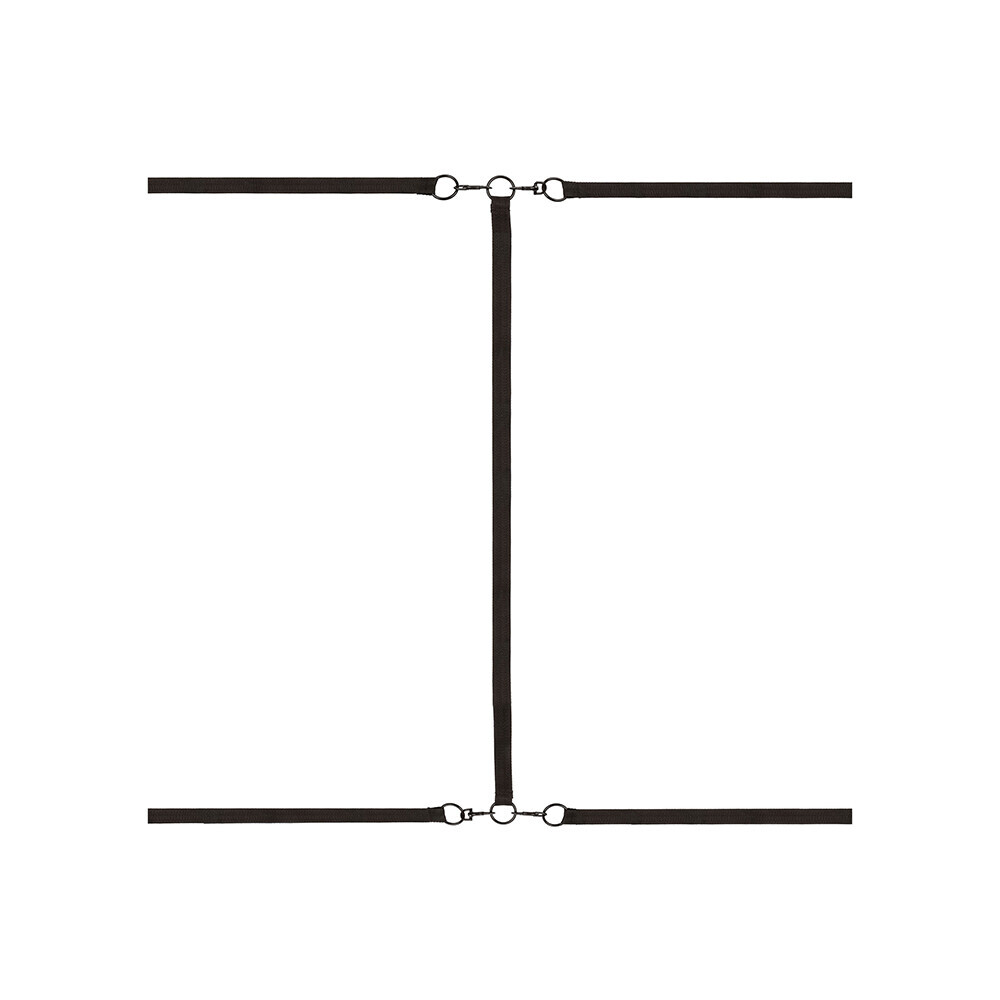4 totally adjustable and detachable wrist or ankle cuffs. 4 sturdy, adjustable tethers to fit most mattresses. May be used under any bed or as individual tethers. Universal clasps and O-rings with swivel design for full dexterity. Soft and plushy interior with a vegan leather exterior. Double padded, double-stitched. Functional, durable and textured design.
