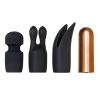 Three unique sensations in one versatile toy. Bouncing bunny ears, a pointed open tulip, and a classic wand shape give you extraordinary choices, each with their own delicious feel. All three are crafted in creamy silicone to slip snugly over the 7-speed powerful bullet that is safe to use underwater for shower and bath time play. Don’t compromise on the shape. Get targeted clitoral stimulation in three different ways, with the toe-curling power to send you off on your most erotic fantasies.One powerful bullet with 3 silicone sleeves.3 Sleeve shapes to suit your mood – bunny, wand and tulip.Compact yet versatile sleeves made from creamy soft silicone.Bullet made from copper-finished ABS.7 Powerful vibrating functions.Easy to use 1-button control.Blue LED light illuminates button.Waterproof and submersible.USB rechargeable, cable included.Phthalate and latex-free.DimensionsBullet Width 0.83 inch, Height 2.33 inch, Depth 0.83 inchBunny sleeve Width 0.98, Height 2.1 inch, Depth 0.98 inch Wand sleeve Width 0.95 inch, Height 2.1 inch, Depth 0.95 inchTulip sleeve Width 0.97 inch, Height 2.6 inch, Depth 0.97 inch