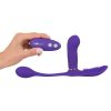 This panty vibrator provides triple stimulation! A narrow ball sits in the anus, a vibrator is in the vagina and there is a stimulator on the pearl of pleasure. The 3 integrated motors help stimulate every pleasure spot and they are whisper quiet, meaning that pleasure can be enjoyed in public. The remote control has a 6-meter range and is a very efficient tool that makes exciting games of control possible if the wearer gives the remote to their partner. The travel lock makes the vibrator a discreet travel companion. Includes a USB cable and battery for the remote control,1 x LR23A.