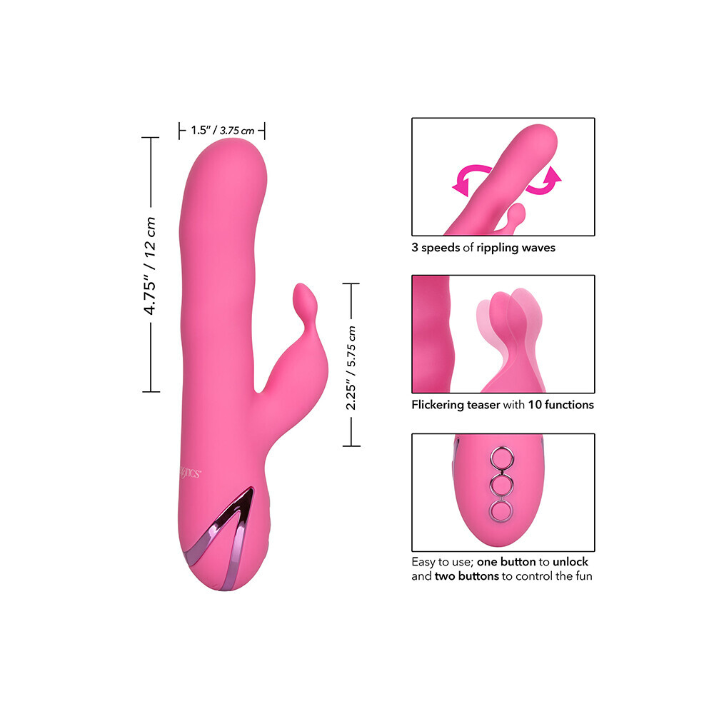 If you thought the Coast of Santa Barbara had some waves, wait until you see the California Dreaming Santa Barbara Surfer. This incredibly unique wave function moves up and down the shaft in a way that is sure to take you to some beautiful places. As the powerful shaft motor sends ripples at three adjustable speeds to your most sensitive areas, the flickering teaser ensures a full-coverage experience, providing 10 functions of independent vibration, pulsation, and escalation in the attached external stimulator.This adult toy is great for solo play or as a couple and is made of body-safe silicone for maximum sexual wellness. The massager comes with a state-of-the-art memory chip that will resume your favourite last-used setting upon powering up and includes a three-second-press travel lock, ensuring that things don’t get started without you.The 4.75-inch shaft of the California Dreaming Santa Barbara Surfer is rechargeable in just 2.5 hours and runs for 40 minutes on high speed and 2.5 hours on low, giving adults the sexual pleasure they are seeking and the power they deserve.