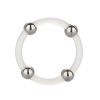 Made to enhance, escalate and intensify ecstasy every time you slip on the Large Steel Beaded Silicone Ring. The sturdy, yet stretchy silicone ring supports while the steel pleasure beads thrill you and your lover. The ultra stretchy and comfortable ring is sure to enhance pleasure by increasing stamina, sensitivity, and girth. Look forward to an explosive pleasure experience with every teasing stroke of the steel pleasure beads. This strong, supportive ring indulges your man with increased stamina, girth, and sensitivity, while you can savor his increase stamina and girth, the thrilling stimulation beads tease you towards an orgasmic wonderland. The passionate pleasure ring is made of silicone and stainless steel pleasure beads.The large ring has a diameter of 1.5 Inches